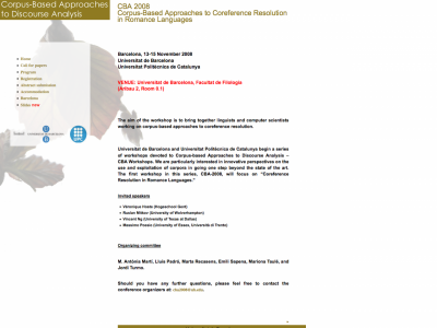 Web del workshop CBA 2008 Corpus Based Approaches to Coreference Resolution in Romance Languages